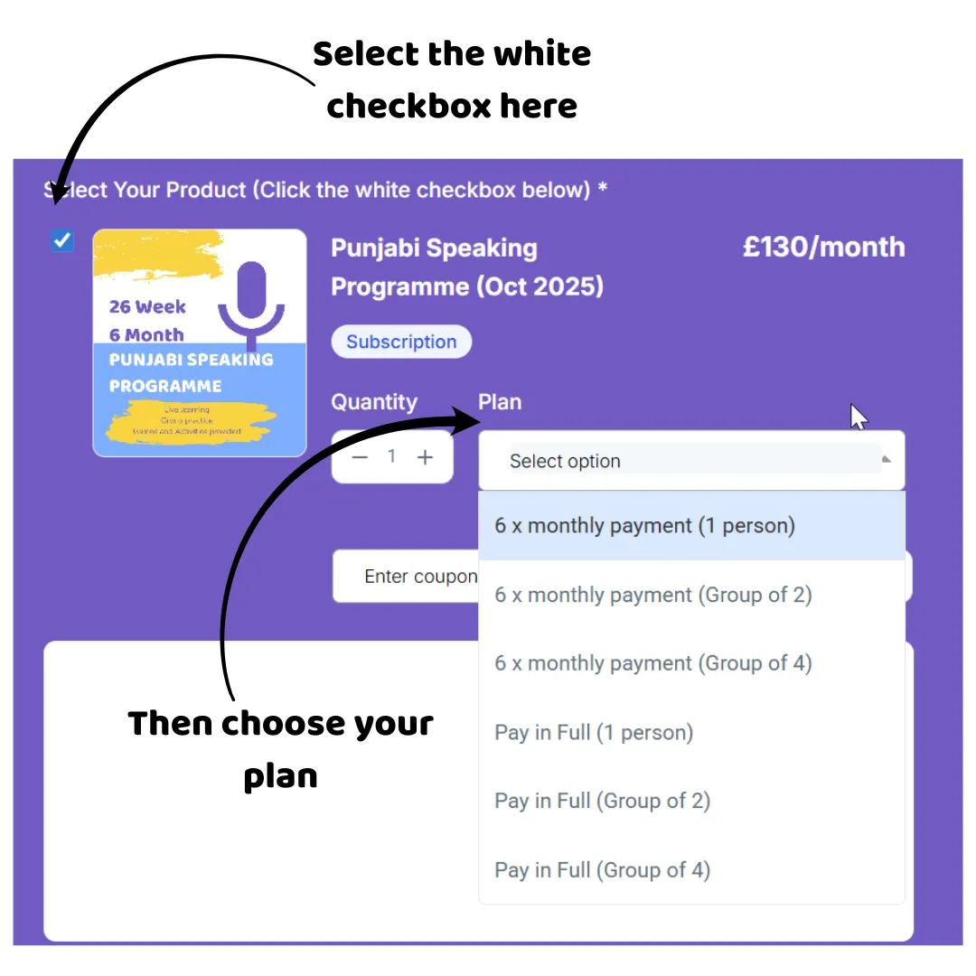 2. Change PLAN to the plan you would like and switch between the payment options.